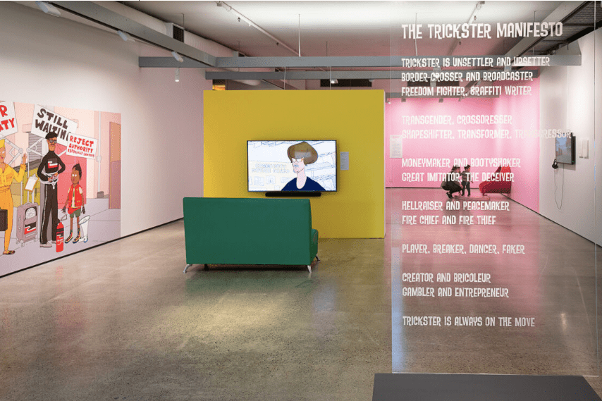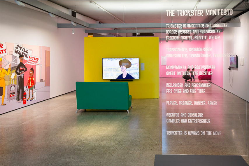 In seeking to position play, humour and mischief as Indigenous tools, the exhibition loosely draws inspiration from Trickster discourse as evidence both that mischievous, cheeky and humorous strategies have a long Indigenous history and that mischief can have a transformative intent.